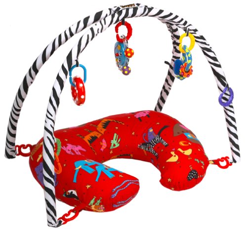 This deluxe Boppy is better for playtime than ever, because an activity arch stocked with award-winning Sassy development toys has been added. Boppy 5-in-1 Fun keeps baby entertained as she works on important motor skills. So baby can play, lie down, and sit, all with the comfort and support of America's favorite nursing pillow. The bold contrasts of the black, white, and red fabrics help stimulate baby's visual development. Six Boppy toy links allow you to transfer toys, making it constantly new and interesting for baby. The gym's soft quilt features a conversion feature with attachment points so toys can be rearranged for laying and tummy-time play. When baby begins to crawl, the gym converts to a crawl-through play space. In crawl-through mode, your infant can play peek-a-boo through the soft mesh sides and parents can attach more toys for added fun.